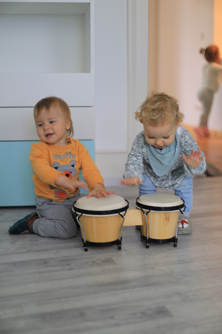 Beim gemeinsamen Musizieren können sich die Kinder jedes Mal ein anderes Instrument auswählen. Konflikte in der Gruppe werden hier als Chance wahrgenommen, um Teilen und Abwechseln zu lernen.